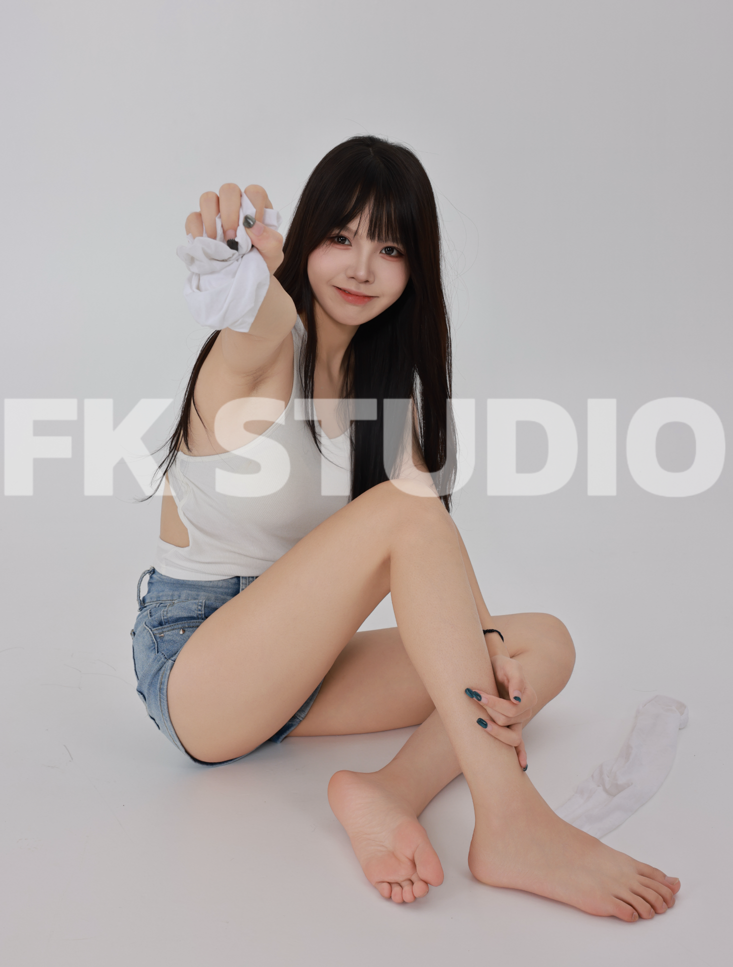 本期摄影服装:白色背心+牛仔短裤